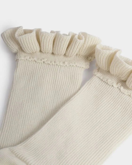 Katie Loxton Gift Boxed Socks in Off White feature a super-soft, rib-knit material with ruffle hems, perfect for keeping feet cosy. Beautifully presented in a gift box, they make the sweetest gifting moment for any occasion.