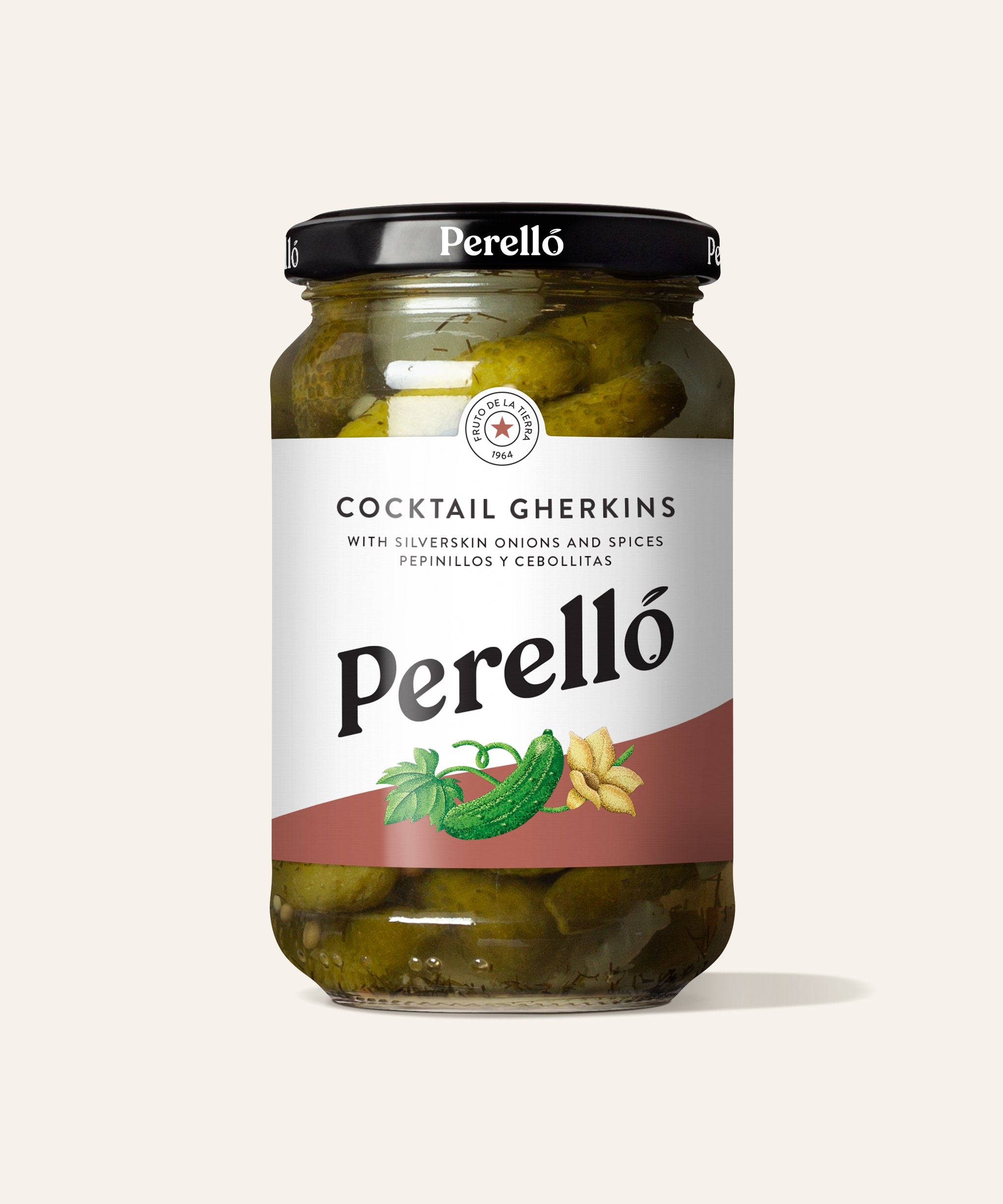 Pickled cocktail gherkins with silverskin onions and spices. These mini gherkins are tiny cucumbers pickled in a mixture of vinegar and brine, and seasoned simply with silverskin onions, mustard seeds and peppercorns. They are moist, crunchy, sharp and an excellent accompaniment to cured meats and cheese. Amazingly versatile, they can be used in hamburgers, salads and smoked fish, or as an ingredient in cold sauces, such as sauce gribiche (made with gherkins and capers) or tartare sauce. Free from artificial additives.