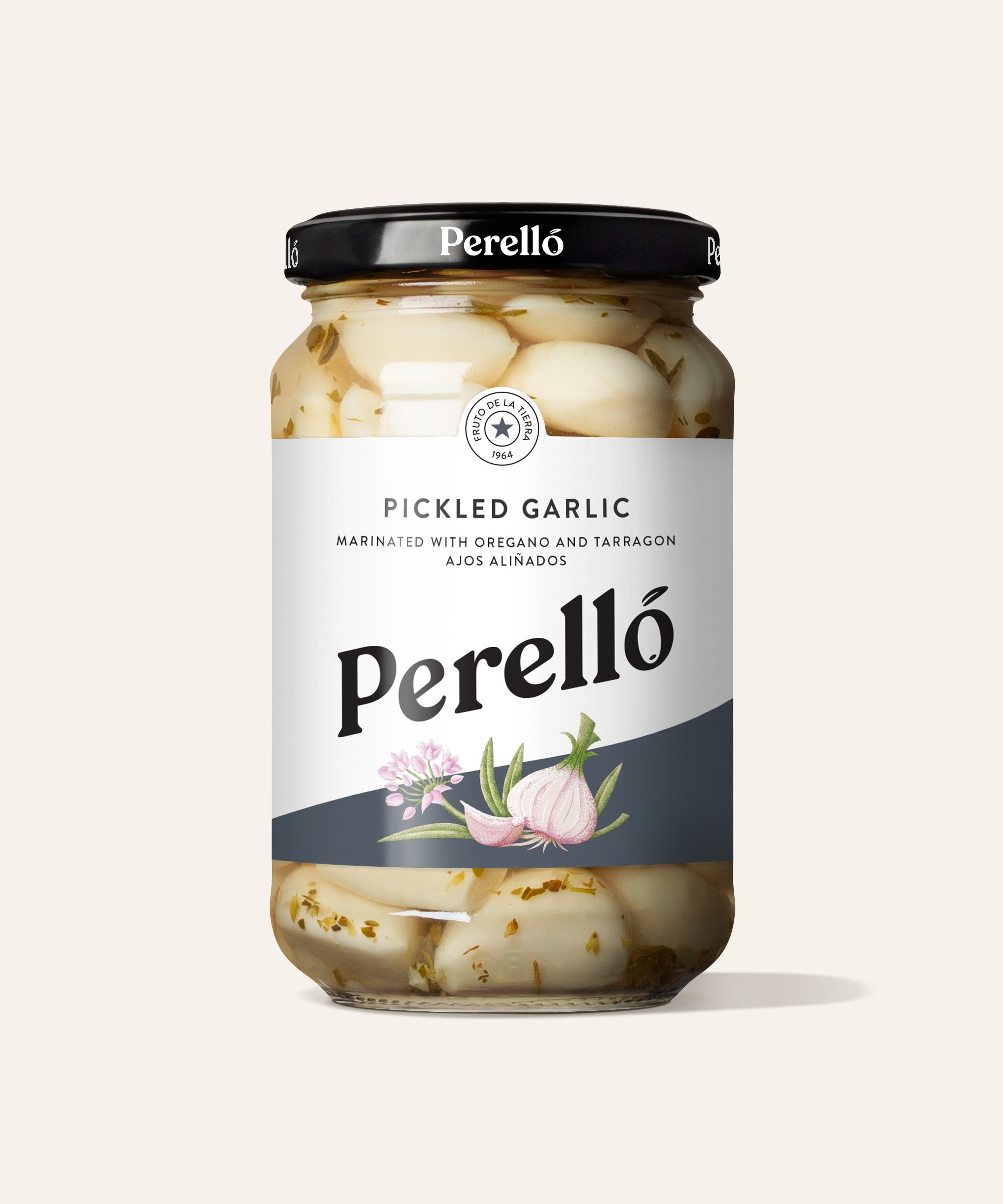 Crunchy marinated pickled garlic cloves are blanched before being steeped in a simple herbed brine. Delicious eaten on their own, they can be used in a variety of salads to bring texture and umami depth or can be blitzed into a sauce. The pickling process reduces the most powerful garlic flavours leaving a mild and gentle flavour. Free from artificial additives.