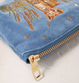 Lion Pride Velvet Mini Pouch - Dusky Blue