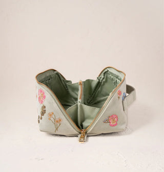Pressed Flowers Velvet Open Flat Makeup Bag Sage