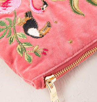 Wild Zebra Palm Blush Pink Velvet Mini Pouch